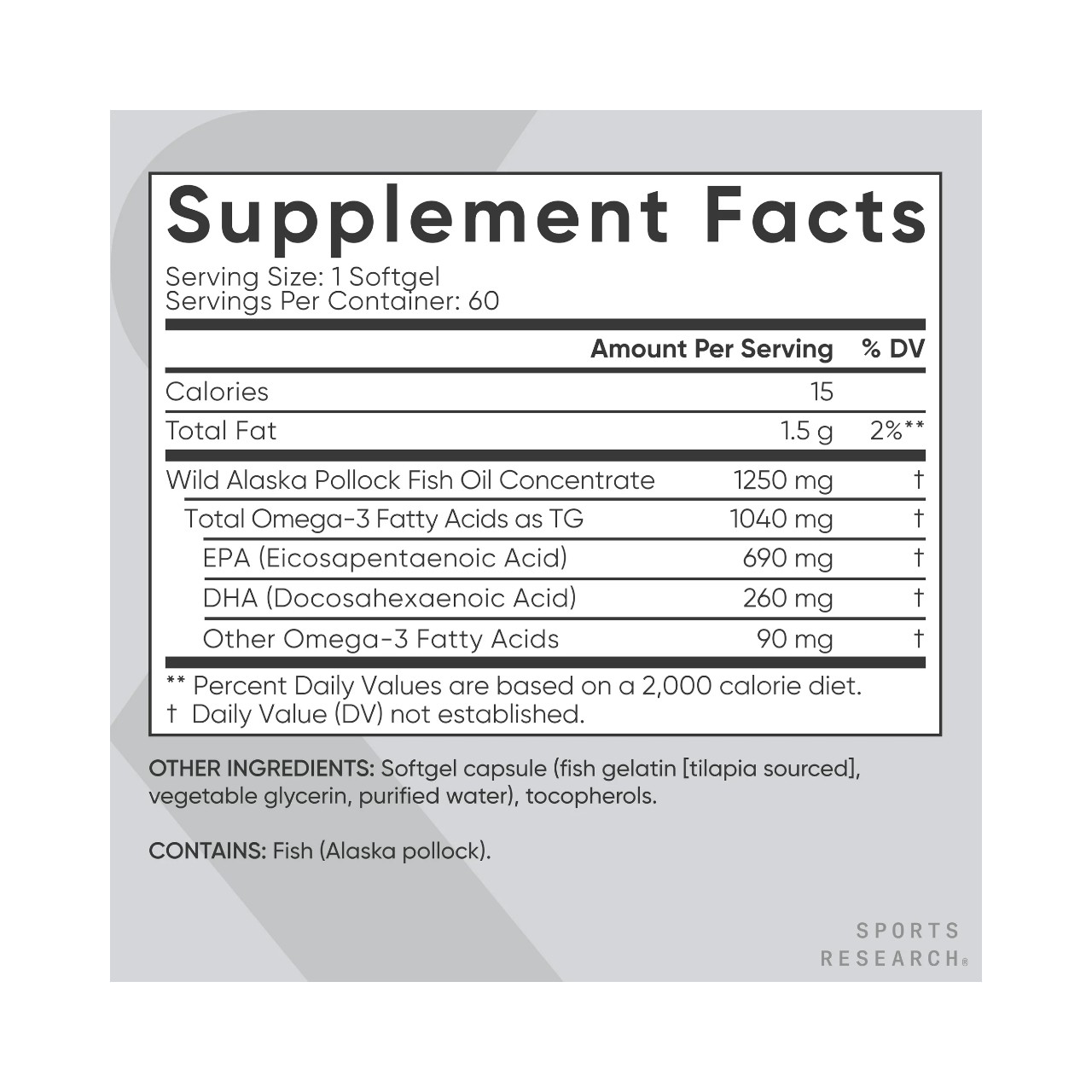 Pero aquí está la cuestión: hay muchos peces en el mar, pero solo hay un Omega 3 triple de Sports Research para adultos. El triple de EPA/DHA en una cápsula blanda. ¿Y si te dijéramos que algunas marcas de aceite de pescado venden una calidad inferior para justificar que tomes 2 o 3 pastillas al día en lugar de una? Es cierto. ¿Y si te dijéramos que envasamos una dosis ultraconcentrada que proporciona el triple de EPA y DHA en una cápsula blanda? ¿Sabes qué? ¡También es cierto!